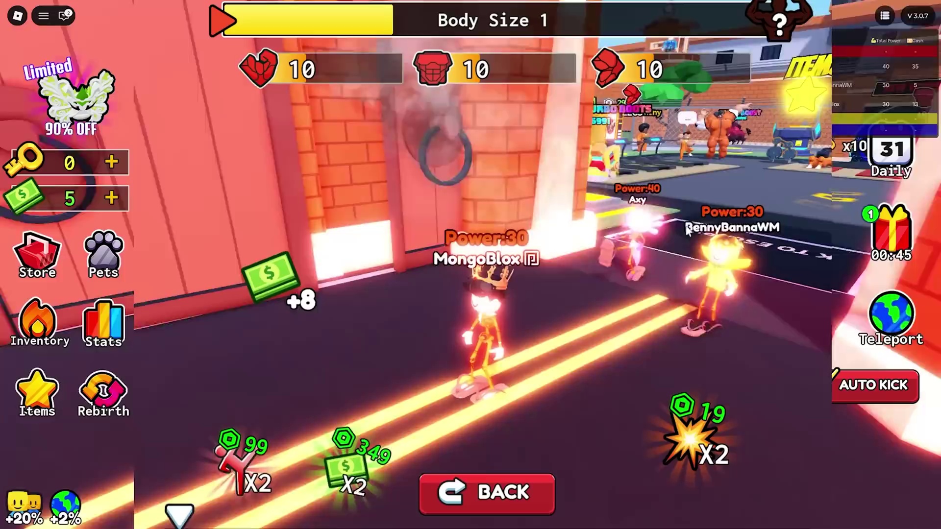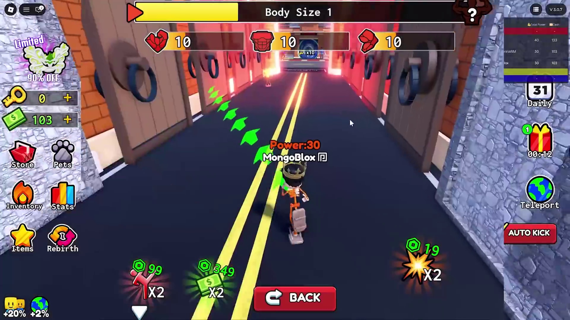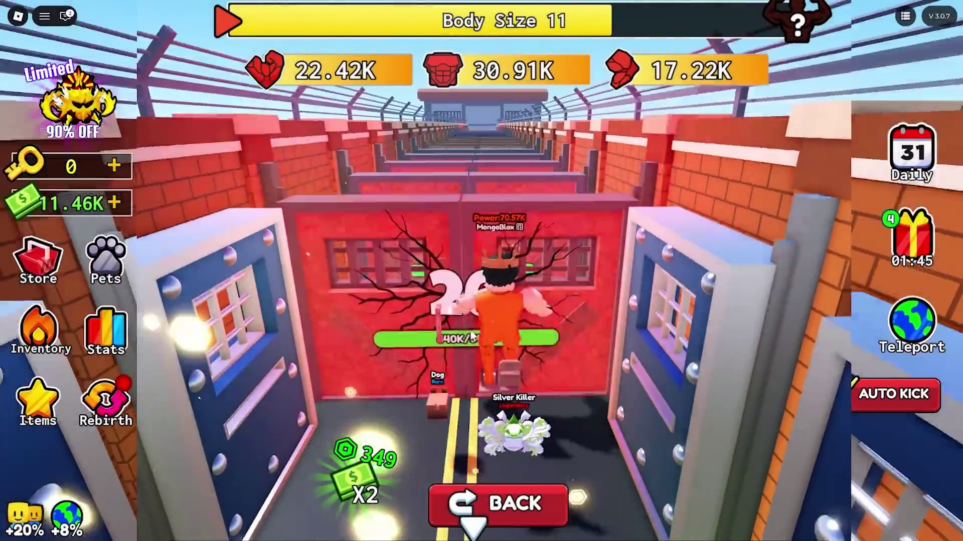 Join our intrepid Robloxian, MongoBlox, and his companions on an epic quest to escape a prison by kicking down every door in their path! This strength simulator isn't just about raw power; it's about strategic training, pet collection, rebirths, and unlocking incredible boosts. Watch as our heroes go from scrawny inmates to muscular titans, smashing through obstacles with every mighty kick.