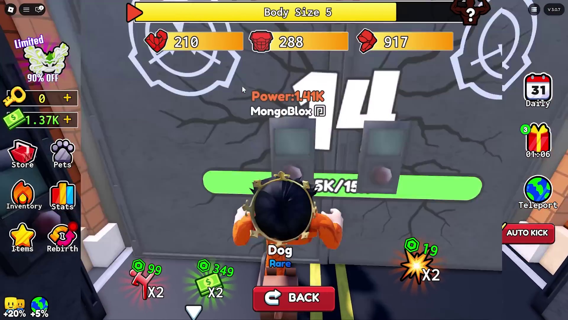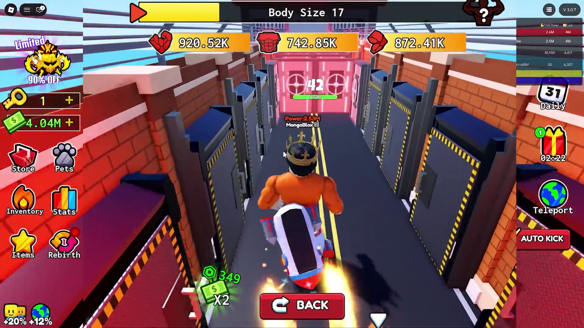 Armed with an array of powerful pets, the speed of rocket boots, and multiple training boosts, MongoBlox returns to the challenging prison doors. His increased power allows him to blast through multiple doors at once, collecting massive amounts of cash in a flash. His power levels soar into the thousands and then hundreds of thousands, quickly trivializing the obstacles that once posed a significant challenge.